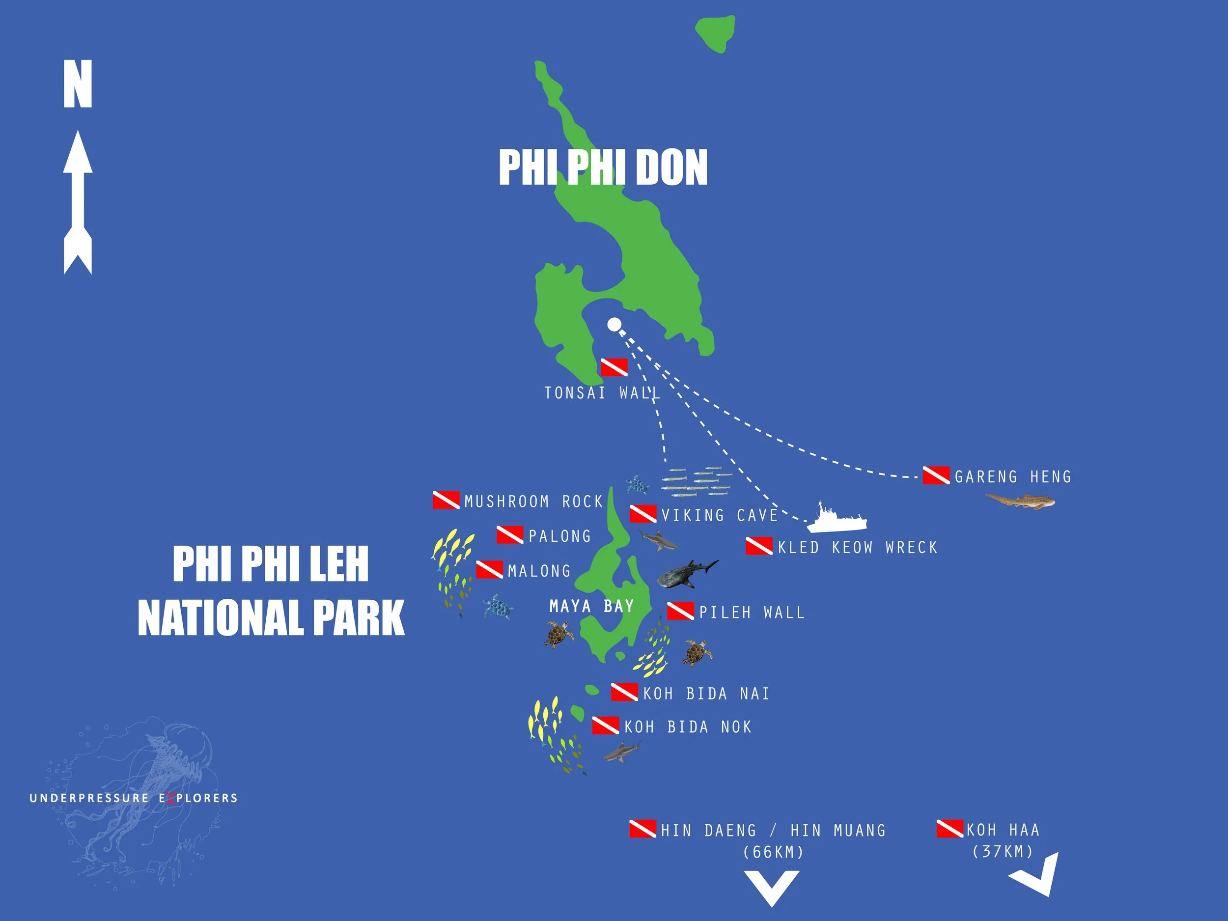 With the local Phi Phi Leh National Park half-day trip, we will be carrying out 2 dives around the island. Bida Nok and Bida Nai are two of our most requested dive sites along with many other dive sites are hidden gems with great features.